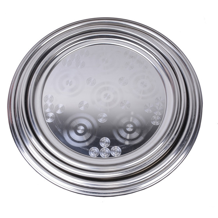 - ابعاد: 30×30 و 36×36 و 40×40 و 46×46 سانتی متر - استیل گرد 4سایز - شستن سینی در صورت تماس با مواد غذایی از جمله لیمو، نمک و خامه - 4 سایز متوسط از بین 12 سایز - عدم استفاده اسکاچ برای شستوشو - عدم قرار دادن برروی شعله مستقیم