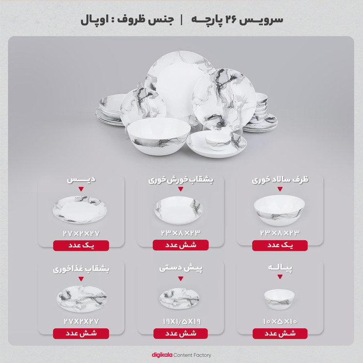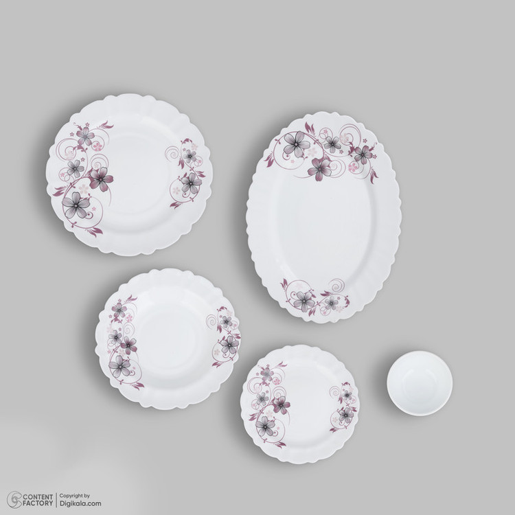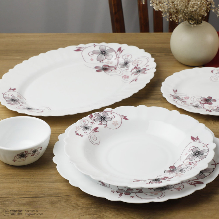 اقلام سرویس: دیس , بشقاب غذاخوری , بشقاب خورشخوری , پیشدستی , پیاله