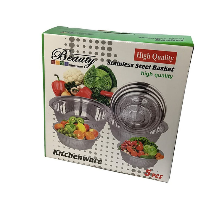 شامل 5 پارچه به ابعاد زیر: - آبکش به سایز 24x24x9 سانتی متر - آبکش به سایز 26x26x9 سانتی متر - آبکش به سایز 28x28x10 سانتی متر - آبکش به سایز 30x30x11 سانتی متر - آبکش به سایز 34x34x12سانتی متر