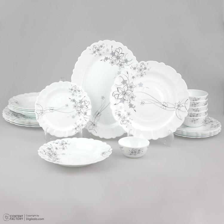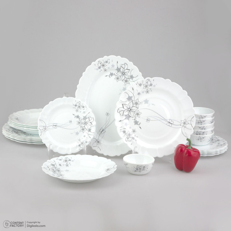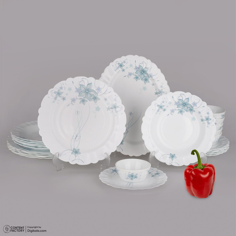 اقلام سرویس: دیس , بشقاب غذاخوری , بشقاب خورشخوری , پیشدستی , پیاله