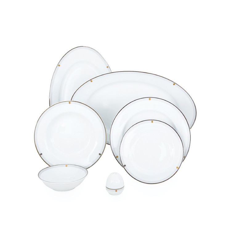 اقلام سرویس: سالادخوری , دیس , بشقاب غذاخوری , بشقاب خورشخوری , پیشدستی , نمکپاش و فلفلپاش