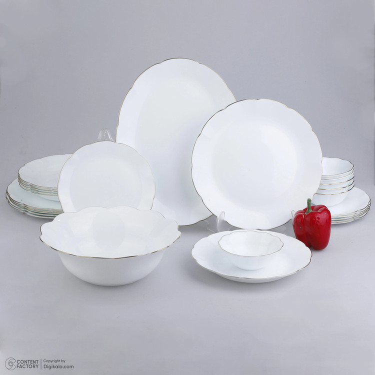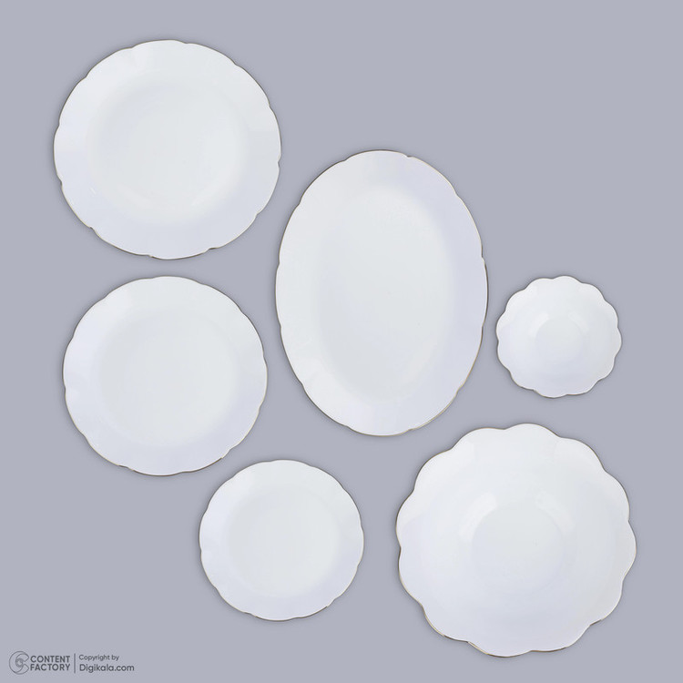 اقلام سرویس: ظرف سالاد , دیس , بشقاب غذاخوری , بشقاب خورشخوری , پیشدستی , پیاله
