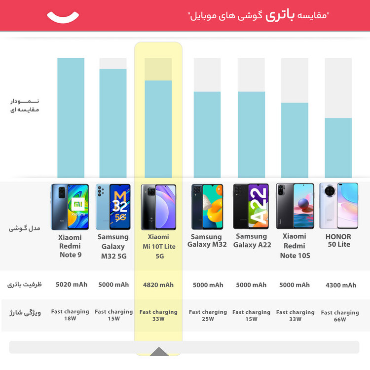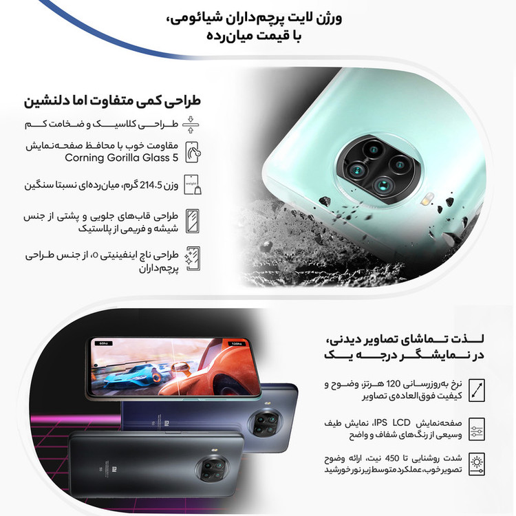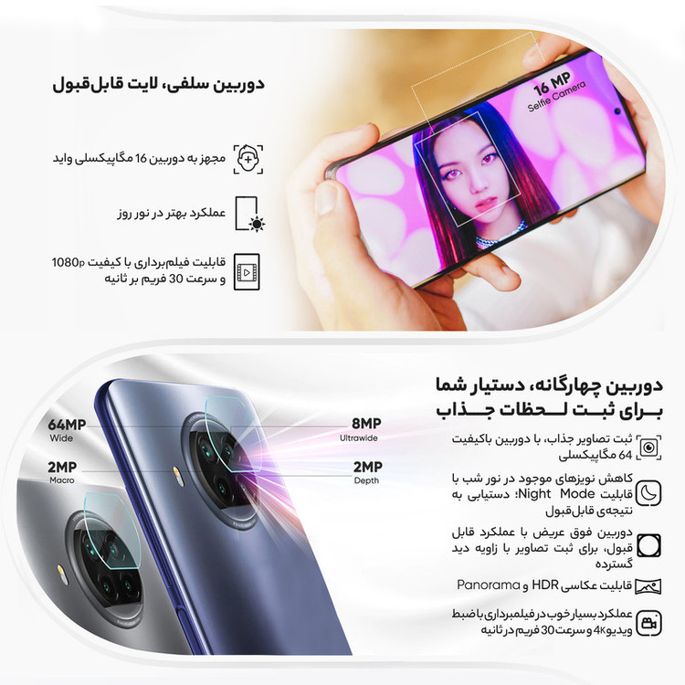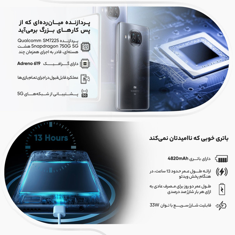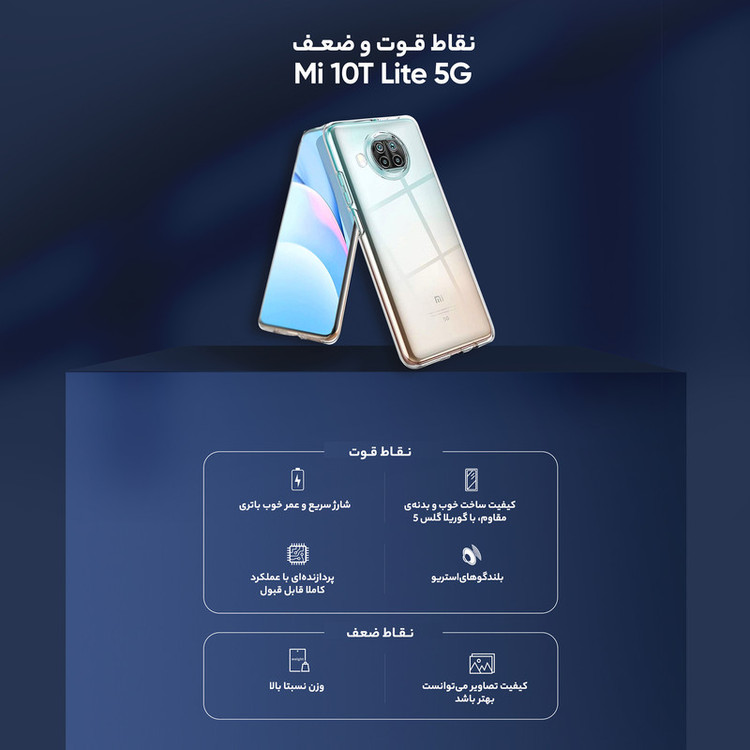 در دنیای امروزی ما، گوشیهای همراه اسمارت یکی از اعضای خانوادههای ما شده و بسیاری از کارهایی که در روزمره انجام میدهیم، الزام به وجود آنها دارد. با پیشرفت تکنولوژی این گوشیها هم روزانه دارای تغییرات و پیشرفت میشوند. یکی از کمپانیهای بزرگ و مطرح در سطح جهانی شیائومی است که گوشیهایی با محبوبیت و طرفداری بالایی تولید میکند و سالانه فروش بسیاری از بازار را بهدلیل کیفیت به خود اختصاص میدهد. گوشی موبایل شیائومی مدل Mi 10T Lite 5G M2007J17G دو سیم کارت ظرفیت 128 گیگابایت یکی از همان گوشیهای باکیفیت این برند است که میتواند تمامی نیازهای ما مانند وبگردی، بازی آفلاین و آنلاین، تماشای فیلم و کلیپ، شبکههای اجتماعی، کار با Applications (نرمافزارها) و بسیاری دیگر را انجام دهید. گفتنی است که این گوشی با تمامی قابلیتهایی که دارد، یک گوشی میانرده است. یکی از ویژگیهای این گوشی باتری آن است. برای گوشی Mi 10T Lite 5G M2007J17G باتری لیتیوم-پلیمری با ظرفیت 4820 میلیآمپرساعت در نظر گرفتهاند که شما میتواند با خیالی آسوده به کار کردن با گوشی بپردازید. شما اگر این گوشی را با باتری 100 درصد در اختیار داشته باشد میتوانید در 1 یا 3 روز تمامی ظرفیت باتری آن استفاده کنید و این موضوع کاملا به نوع استفاده شما بستگی دارد. از این گوشی میتوانید استفادههای بسیار متنوع و باکیفیتی در عکاسی داشته باشید. پردازنده مرکزی (CPU) و پردازنده گرافیکی (GPU) این گوشی بهاندازهای قدرت دارند که میتوانید بازیهای روز آنلاین و آفلاین با Graphic Map بزرگ و برنامههای محاسباتی و عملیاتی را اجرا کنید. این گوشی دارای 128 گیگابایت حافظه داخلی و 6 گیگابایت حافظه RAM (رَم) است. گوشی شیائومی Mi 10T Lite 5G M2007J17G دارای دوربین چهارگانه در پشت گوشی بوده که دارای کیفیتهای 64، 8، 2 و 2 مگاپیکسل بوده که هرکدام دارای کارایی و استفادهای متفاوتی در انواع عکاسیهای شما هستند. دوربین عکاسی سلفی Mi 10T Lite 5G دارای لنز عریض (Wide) با رزولوشن 16 مگاپیکسل بوده که میتوانید عکاسیهای باکیفیتی از خود، بههمراه دوستان یا در هر محیط و طبیعتی داشته باشید.