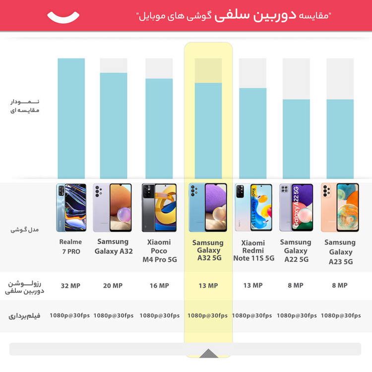 گوشیهای هوشمند میانرده سری A سامسونگ تا به امروز توانستهاند با بهره بردن از مشخصات فنی مناسب، عملکرد خوبی را بهنمایش بگذارند. سامسونگ Galaxy A32 5G یکی از گوشیهای هوشمند میانرده باکیفیت این شرکت است که طراحی بسیار جذاب و کاربر پسندی را با خود بههمراه دارد. در نمای روبهرویی این گوشی به صفحهنمایش با ابعاد 6.5 اینچ و رزولوشن 720×1600 پیکسل از نوع TFT مجهز شده است که توانایی نمایش 270 پیکسل در هر اینچ و حداکثر نرخ بروزرسانی 60 هرتز را دارد. در قسمت پشتی این گوشی، یک سنسور دوربین اصلی با رزولوشن 48 مگاپیکسل از نوع عریض (wide) در کنار سنسور 8 مگاپیکسل از نوع فوق عریض (ultrawide) بههمراه سنسور 5 مگاپیکسل از نوع ماکرو و سنسور 2 مگاپیکسل سنچش عمق، سنسورهای دوربین چهارگانه سامسونگ Galaxy A32 5G را تشکیل میدهند. بریدگی V شکل ناچ در قسمت بالایی و مرکزی صفحهنمایش هم سنسور دوربین سلفی با رزولوشن 13 مگاپیکسل را در خود جای داده است. در بخش مشخصات سختافزاری هم حضور پردازنده دیمنسیتی 720 شرکت مدیاتک سبب شده تا این گوشی توانایی ارائه عملکرد قابل قبولی را در اجرای بازیهای محبوب و نرمافزارهای کاربردی داشته باشد. در پایان هم باتری با میزان ظرفیت 5000 میلیآمپرساعت سبب شده تا به ازای هر بار شارژ صد درصدی، طول عمر مفید (زمان آماده بهکار) دو روز را در شرایط استفاده معمولی شاهد باشید.
