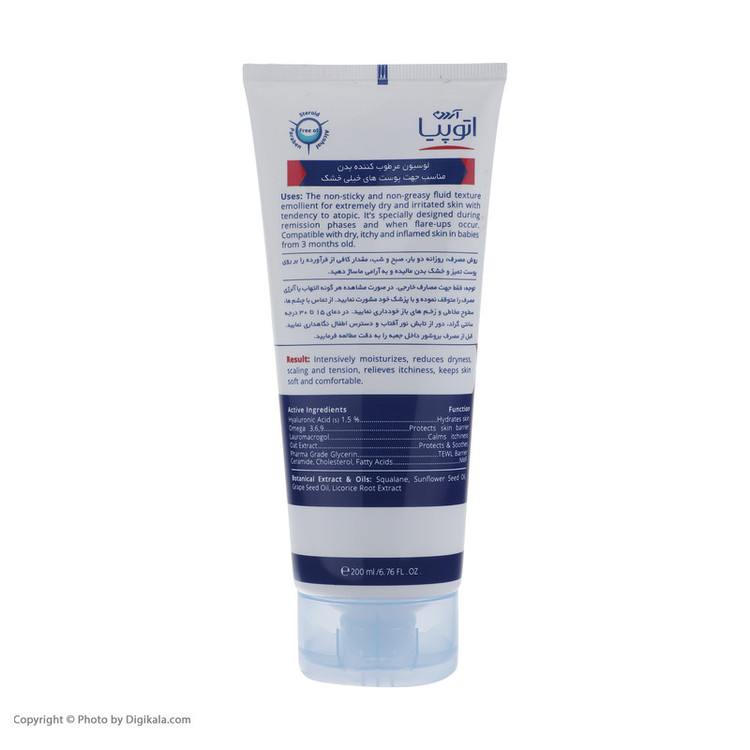 سایر مشخصات: روزانه دو بار، صبح و شب، مقدار کافی از فرآورده را بر روی پوست تمیز و خشک بدن مالیده و آرامی ماساژ دهید.