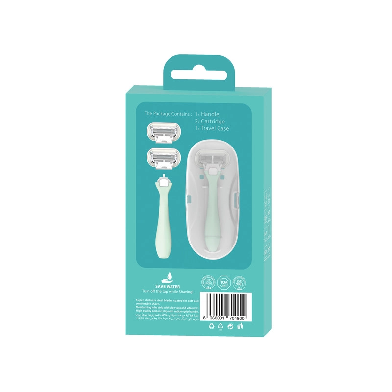 پنج لبه سری متحرک جنس تیغه استیل ضد زنگ با روکش سرامیکی دسته رابر ضد لغزش دارای قاب مسافرتی پلاستیکی + 1 سری اضافه