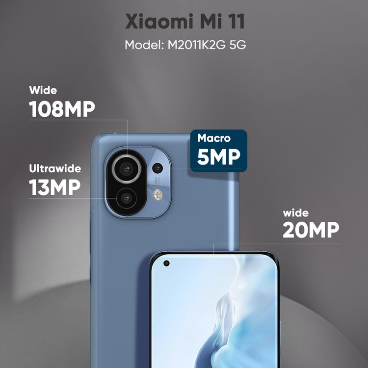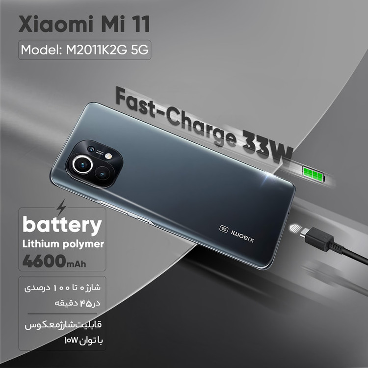 گوشی موبایل Mi 11 M2011K2G شیائومی یکی از قدرتمندترین محصولات میانرده موجود در بازار است که با امکانات بسیار روانه بازار شده است. گوشی موبایل Mi 11 M2011K2G با صفحهنمایش آمولد طراحی شده است و ظاهر هم زیبایی دارد. شیائومی تلاش کرده است حاشیه را در این تولید جدید خود تا حد امکان کم کند. این گوشی قاب پشتی از جنس پلاستیک دارد و قاب جلویی آن را شیشه پوشانده که البته جلوهی زیبایی به گوشی داده است. این محصول شیائومی با جدیدترین نسخه از سیستمعامل اندروید روانه بازار شده است تا از هر نظر گوشی مدرن بهحساب بیاید. صفحهنمایش استفادهشده در این گوشی 6.81 اینچ با رزولوشن FullHD+ است که با استفاده از فناوری AMOLED و تصاویر شفاف و بینظیری با یک میلیارد رنگ را به نمایش میگذارد. این صفحهنمایش در هر اینچ 515 پیکسل را نشان میدهد که این یعنی جزئیات و وضوح تصویر عالی است. همچنین روکش این نمایشگر لایهی محافظ Glass front (Gorilla Glass Victus), glass back (Gorilla Glass 5) است که از خطوخش و ضربه جلوگیری میکند. تراشهی این محصول Qualcomm SM8350 Snapdragon 888 5G (5 nm) Chipset از تراشههای 5 نانومتری کوالکام است که به همراه 8 گیگابایت رم عرضه میشود. این تراشه برای بازکردن چندین برنامه به صورت همزمان و تماشای ویدئو کاملاً مناسب است. تراشهی گرافیکی Adreno 660 GPU هم برای پخش ویدئو و بازی در این محصول درنظر گرفته شده است. این گوشی در ظرفیت 256 گیگابایتی عرضه شده است و کارت حافظه جانبی را ساپورت نمیکند. دوربین اصلی این مدل سنسور 108 مگاپیکسلی دارد و فلش Dual-LED dual-tone برخوردار است. سنسور 13 مگاپیکسلی دیگر از نوع فوق عریض (Ultrawide) و سنسور 5 مگاپیکسلی لنز ماکرو هم در کنار این دوربین اصلی مجموعه دوربینهای قاب پشتی گوشی موبایل شیائومی مدل Mi 11 M2011K2G دو سیم کارت ظرفیت 256 گیگابایت و 8 گیگابایت رم را تشکیل دادهاند. دوربین سلفی 20 مگاپیکسلی هم در قاب جلویی این گوشی به کار گرفته شده است. باتری 4600 میلیآمپرساعتی، پشتیبانی از فناوری شارژ سریع 33 واتی، درگاه USB Type-C و حسگر اثرانگشت اپتیکال در زیر صفحهنمایش هم از دیگر ویژگیهای این تازه وارد است.