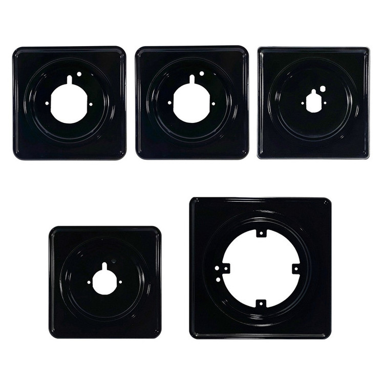 5 عدد پلیت با ابعاد زیر : 4 عدد به ابعاد 18.5×18.5 سانتیمتر 2 عدد با حفره های مساوی و 2 عدد دیگر با حفره های متفاوت 1 عدد صفحه به ابعاد 22.5×22.5 سانتیمتر