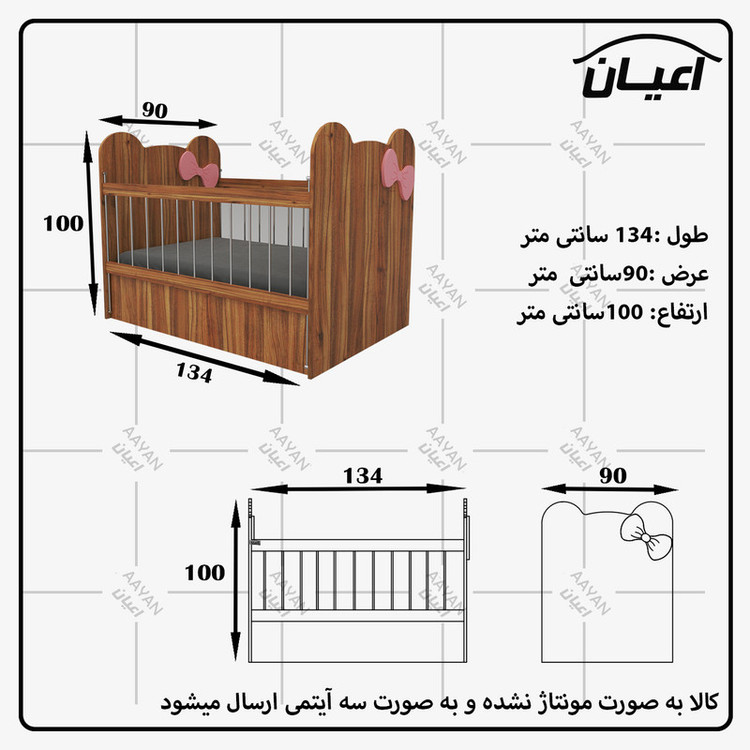 جنس مغزی نئوپان با روکش ملامینه شرکتی-پاپیون وکیوم صورتی. کفی تخت از جنس نئوپان خام است. کالا فاقد تشک می باشد. کالا به صورت مونتاژ نشده و بسته بندی به صورت سه آیتمی است.
