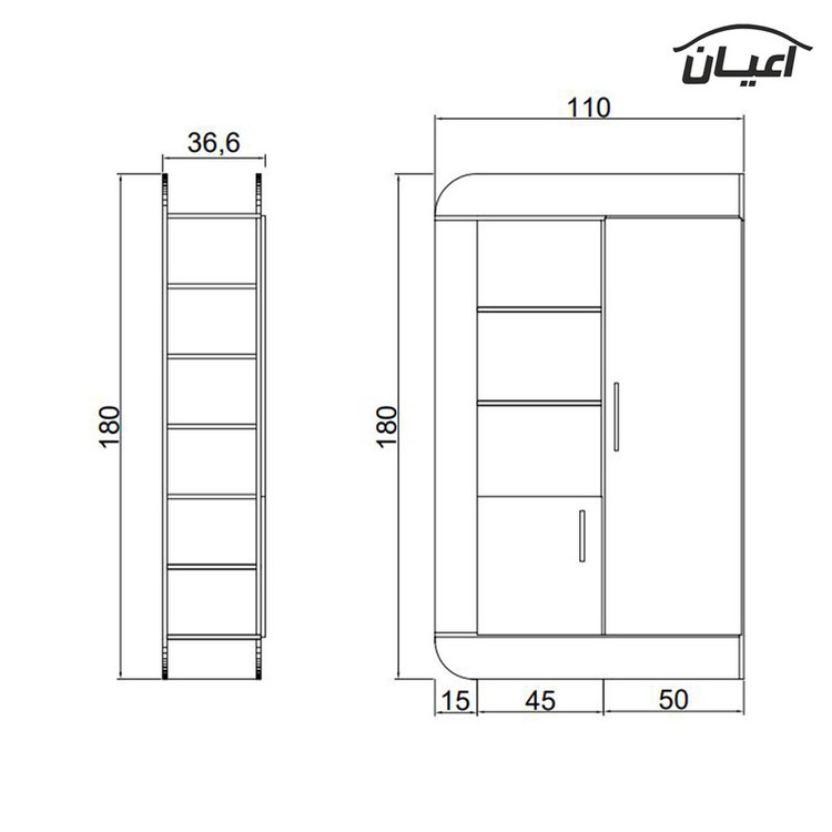 جنس ملامینه. وزن متناسب با ابعاد. نوار پی وی سی. بسته بندی با لوگو و برند اعیان. لولا آرام بند و ساده ریل سه تکه . دارای آینه .