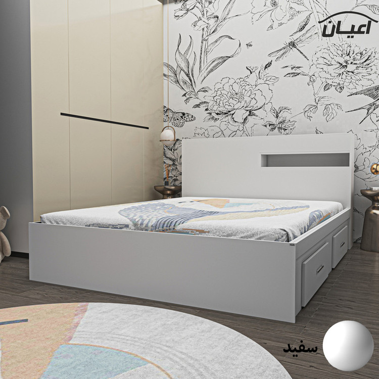 جنس نئوپان ملامینه شرکتی. جنس کفی نئوپان خام به صورت سه تکه. کشو ها به صورت چرخدار می باشد. کالا فاقد تشک می باشد. بسته بندی به صورت چهار آیتمی حباب دار