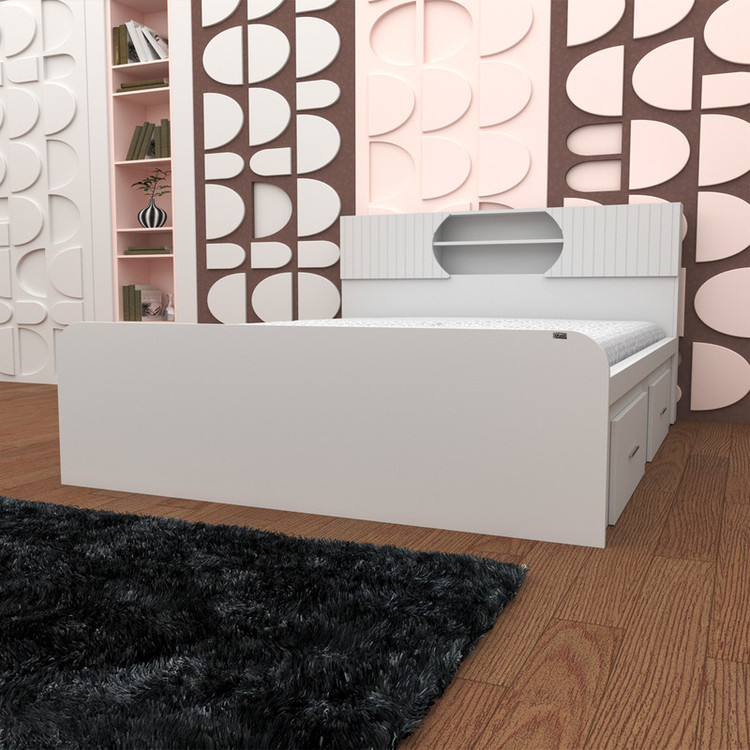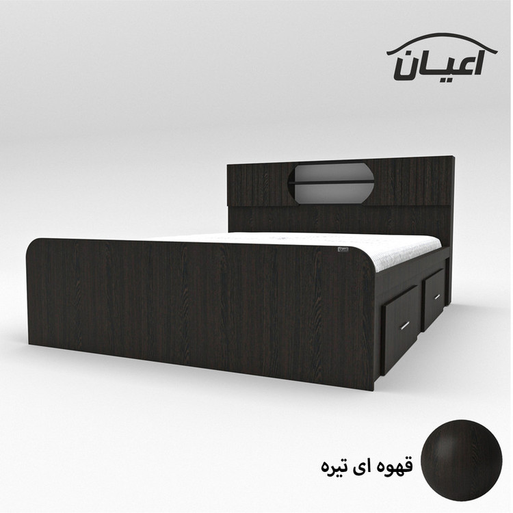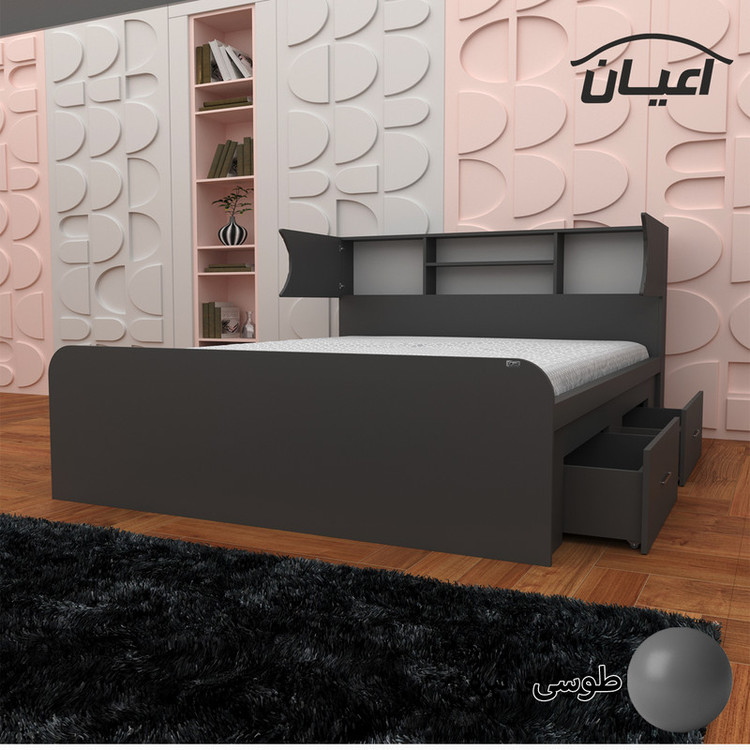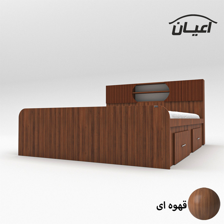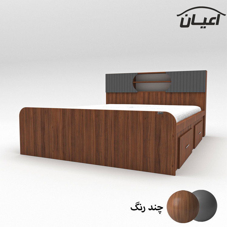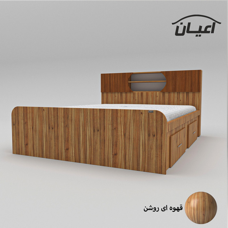 جنس نئوپان ملامینه جنس درب باکس کلگی بالا وکیوم دو درب کمدی به صورت آرام بند کشوها به صورت چرخدار کفی تخت سه تکه از جنس نئوپان خام است. کالا فاقد تشک می باشد بسته بندی به صورت چهار آیتمی است.