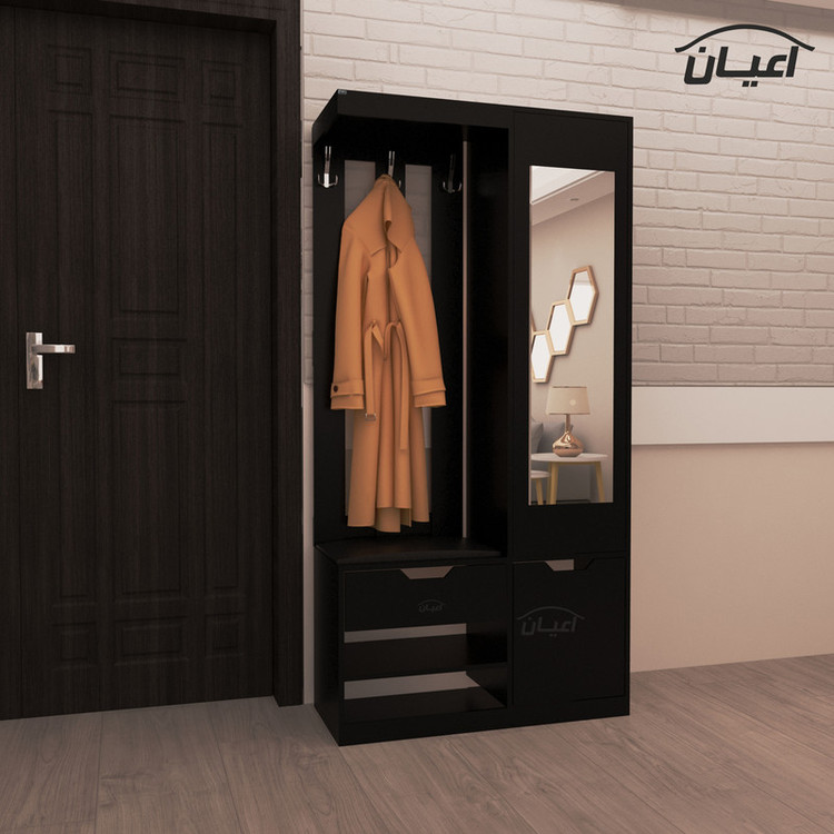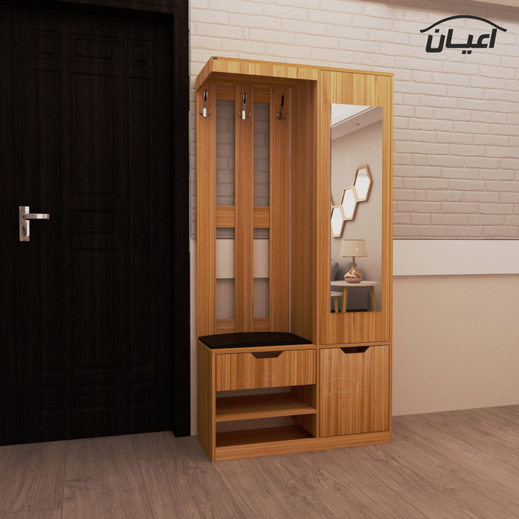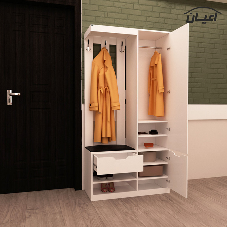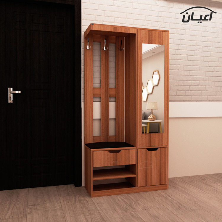 جنس ملامینه. وزن متناسب با ابعاد. نوار پی وی سی. بسته بندی با لوگو و برند اعیان. لولا آرام بند ریل سه تکه . آویز لباس. دارای آینه .