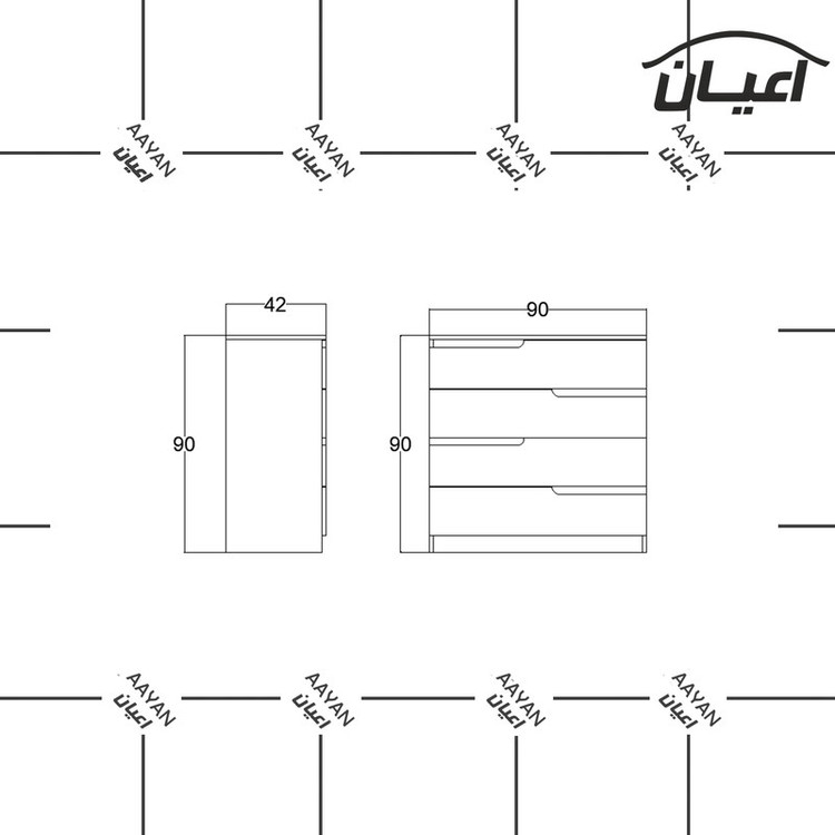 سایر توضیحات: جنس نئوپان ملامینه. وزن متناسب با ابعاد. نوار پی وی سی. ریل سه تکه. بسته بندی با لوگو و برند اعیان.ابعاد 90x90x40سانتیمتر-رنگ بندی در آلبوم محصول.