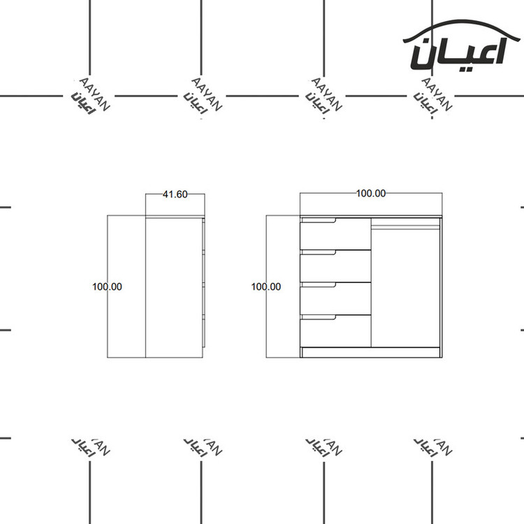 سایر توضیحات: جنس نئوپان ملامینه. وزن متناسب با ابعاد. نوار پی وی سی. ریل سه تکه. بسته بندی با لوگو و برند اعیان.ابعاد 100x100x40سانتیمتر-رنگ بندی در آلبوم محصول.