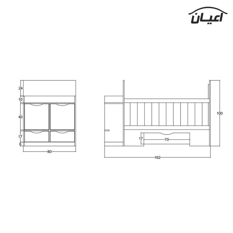 جنس ملامینه. وزن متناسب با ابعاد. نوار پی وی سی. بسته بندی با لوگو و برند اعیان. ریل سه تکه. لولا رام بند