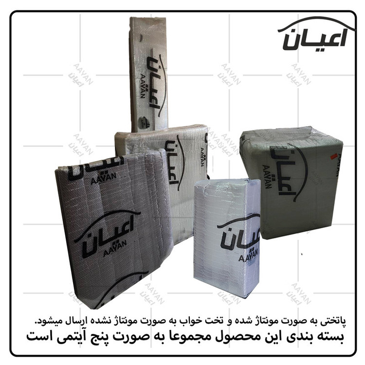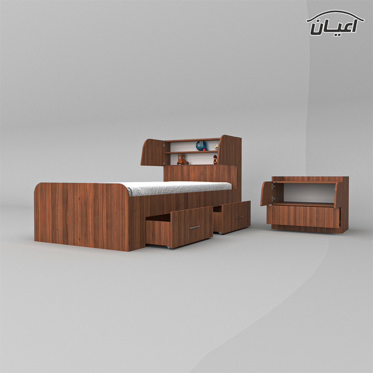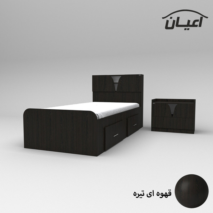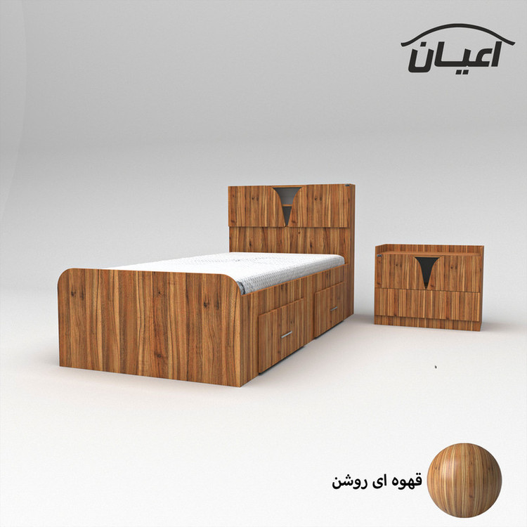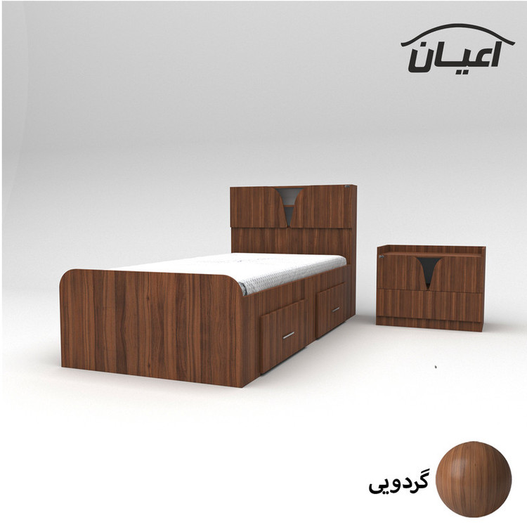 جنس نئوپان ملامینه شرکتی درب ها به صورت آرامبند کشوهای تختخواب به صورت چرخدار کفی تخت دو تکه از جنس نئوپان است. کالا فاقد تشک می باشد بسته بندی مجموعا به صورت پنج آیتمی است.