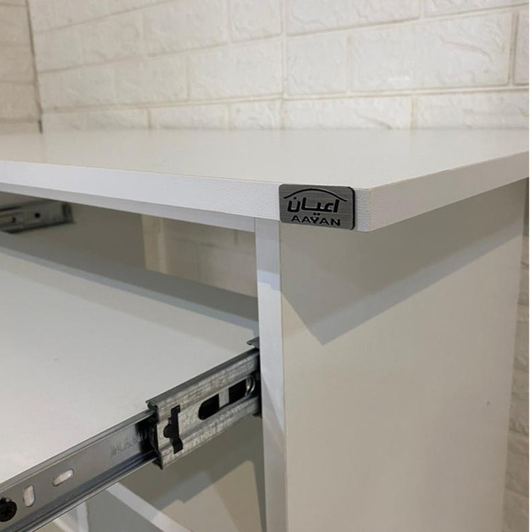 جنس ملامینه. وزن متناسب با ابعاد. نوار پی وی سی. بسته بندی با لوگو و برند اعیان. ریل سه تکه.