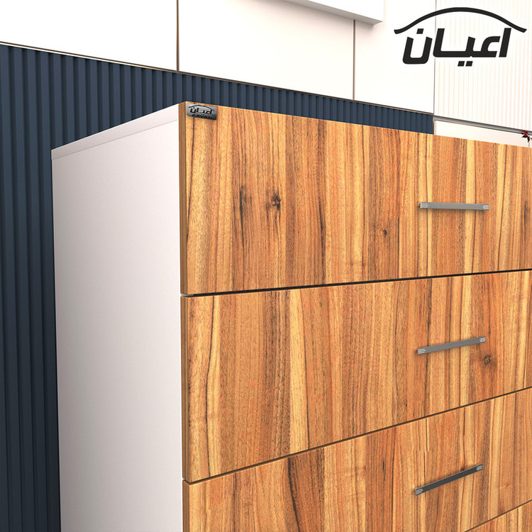 جنس ملامینه وزن مناسب با ابعاد نوار پی وی سی بسته بندی با برند و لوگو اعیان پنج کشو بازشو ریل سه تکه