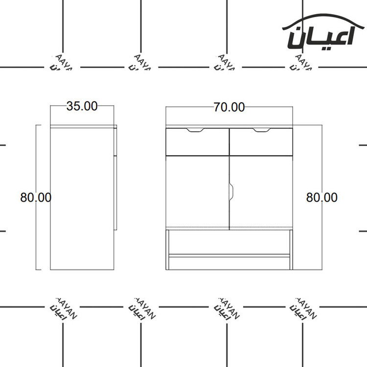 جنس ملامینه . وزن متناسب با ابعاد. نوار پی وی سی. ریل سه تکه. لولا آرام بند . بسته بندی با لوگو و برند اعیان.