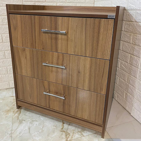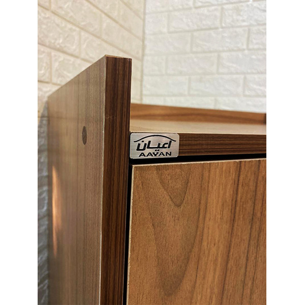 جنس ملامینه. وزن متناسب با ابعاد. نوار پی وی سی. بسته بندی با لوگو و برند اعیان. سه کشو باز شو. ریل سه تکه.