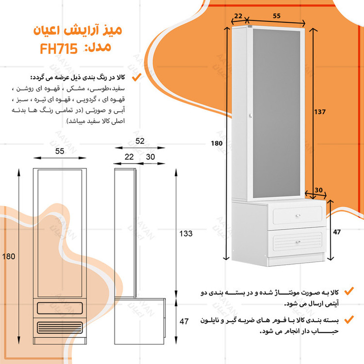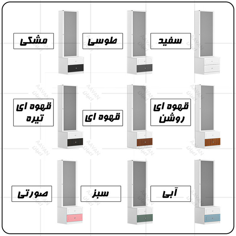 سایر توضیحات: بدنه ی کالا سفید و رنگ بندی کالا بر اساس رنگ کشوی آخر کالا می باشد .
