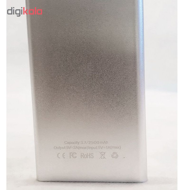 پاوربانک حاضر یکی از پاوربانک هایی است که به عنوان یک پاور بانک جیبی شناخته می شود و به راحتی می توان در هر جایی آن را حمل کرد. جنس بدنه آن از پلاستیک فشرده و دارای ابعاد 1*7*11 سانتی متر می باشد. این پاور بانک دارای ظرفیت 2500 میلی آمپر و برای رفع نیاز های فوری تا رسیدن به منبع شارژ بسیار مناسب می باشد. دکمه خاموش و روشن، 4 چراغ ریز شاخص ال ای دی، یک درگاه خروجی و یک درگاه ورودی از دیگر مشخصات این پاوربانک می باشد.