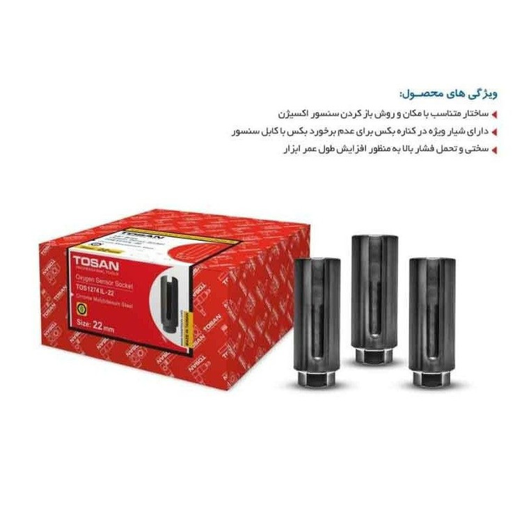 سایر توضیحات: ساختار متناسب بامکان و روش باز کردن سنسور اکسیژن / دارای شیار ویژه درکناربکس برای عدم برخورد بکس با کابل سنسور / سختی و تحمل فشار بالا به منظور افزایش طول عمر / جنس: فولاد کروم مولیبدن CR-MO / سایز بکس :۲۲ / سایز درایو:۱/۲