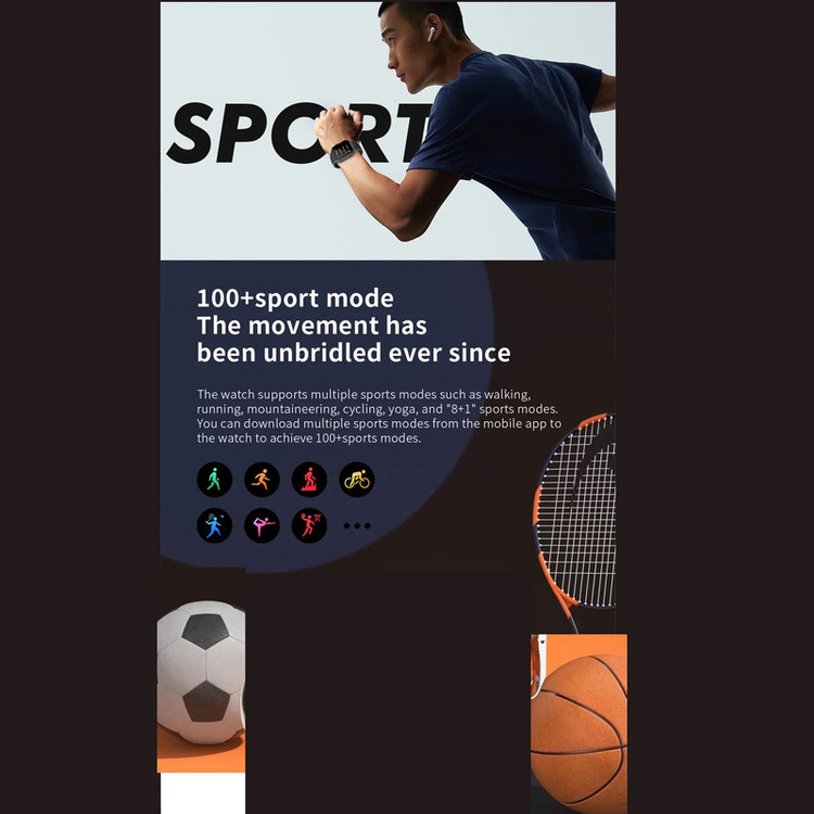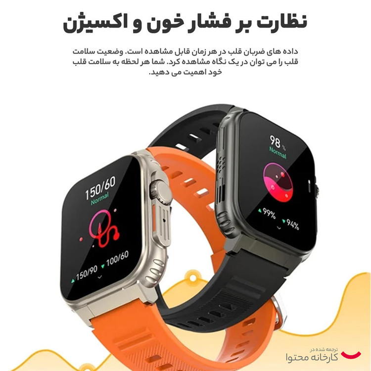 قابلیتهای ساعت هوشمند : صفحه نمایش لمسی , کنترل موسیقی (Music Player) , کنترل سطح اکسیژن خون , قابلیت مکالمه از طریق بلوتوث