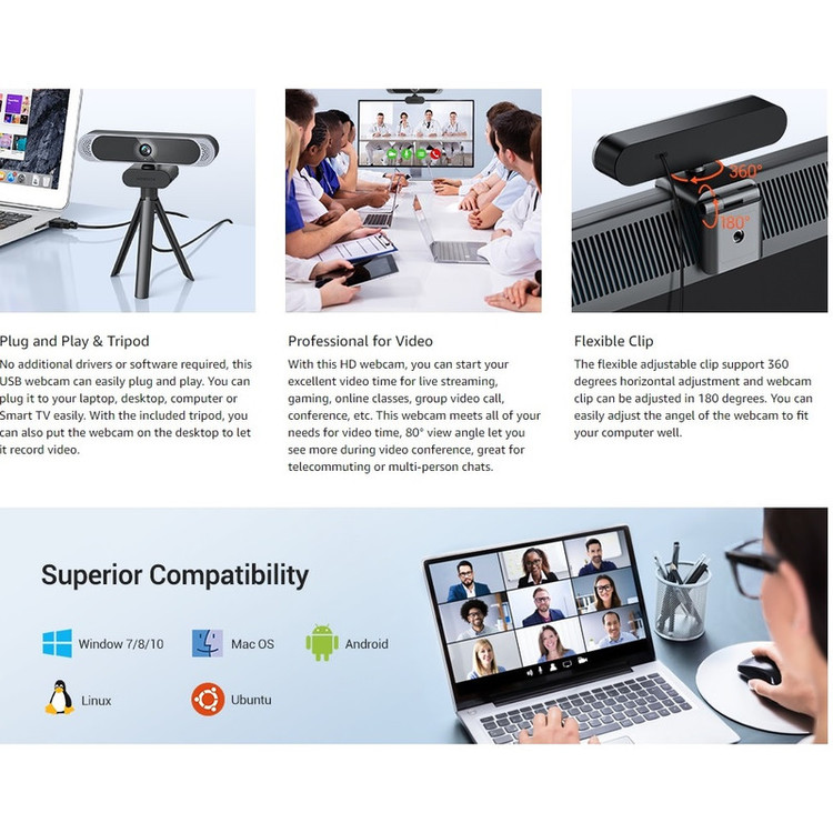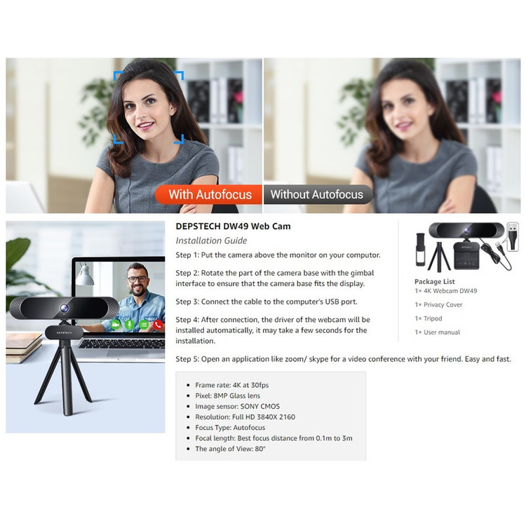 4K Webcam کاور دفترچه راهنما سه پایه