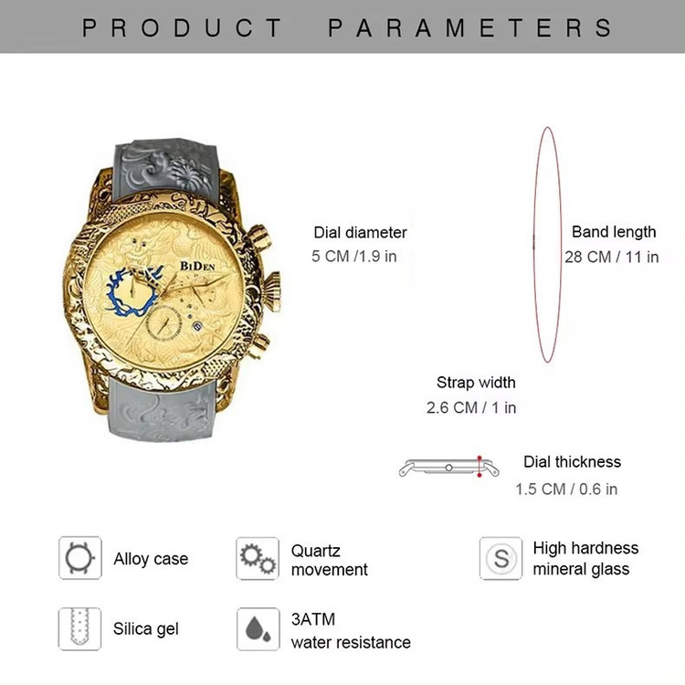 - ژاپنی کوارتز و باتری وارداتی - طراحی زیبا ، کرونوگراف ، ضد آب ،با تاریخ - کوارتز سه بعدی ،طرح اژدها، بسیار طراحی خاص و شیک و شکیل -