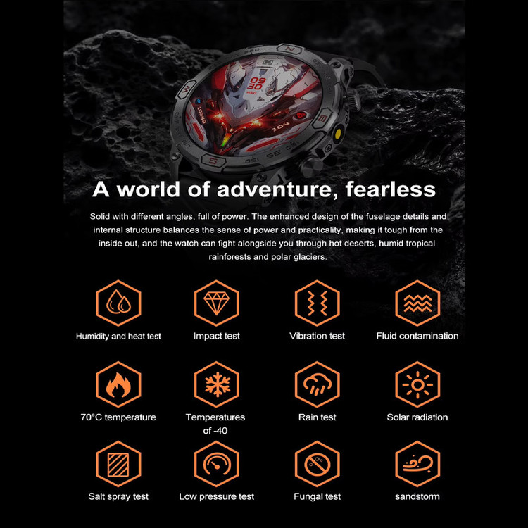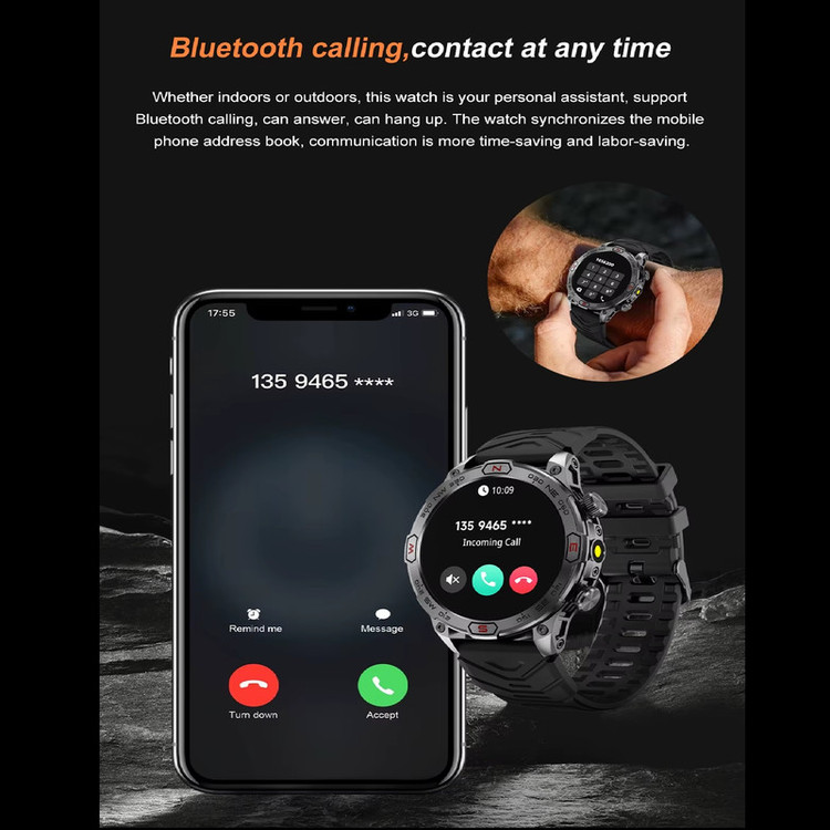 سایر مشخصات سخت افزاری : وای فای، صفحه لمسی، 4g، APP Control، چراغ قوه LED، ضد ضربه، ضد آب 50 متر، بلوتوث، usb، تلفن همراه