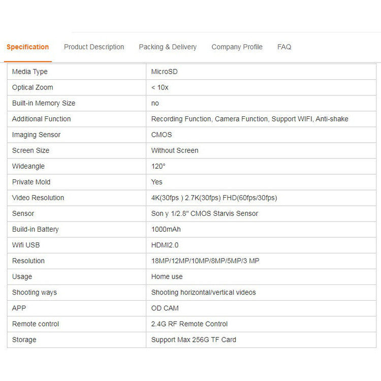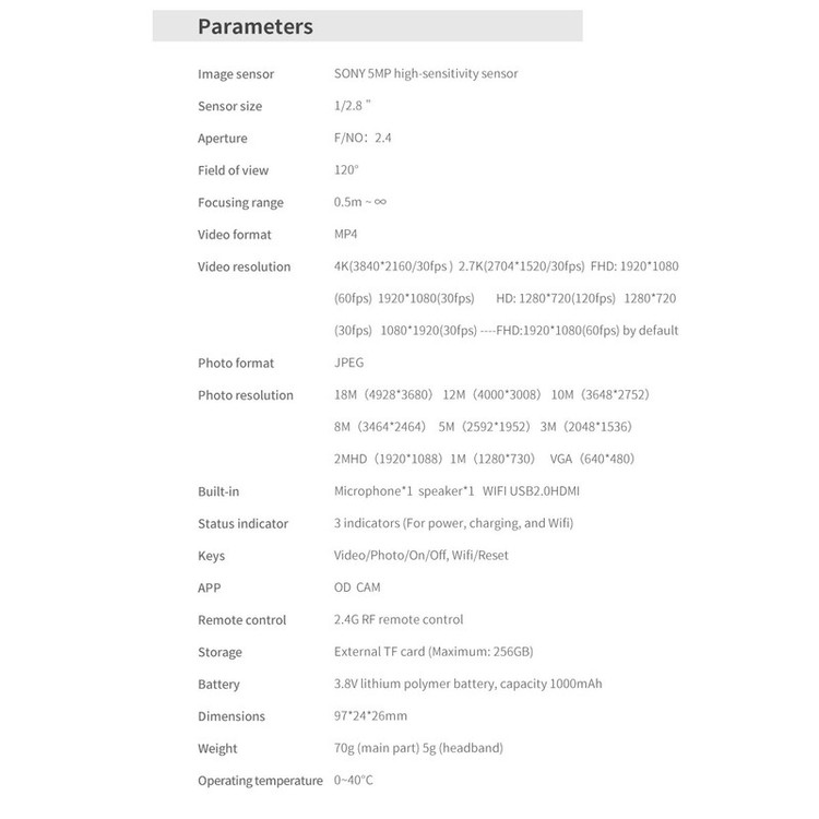 عملکرد ضبط، عملکرد دوربین، پشتیبانی از WIFI، ضد لرزش - کنترل از راه دور RF 2.4G - پشتیبانی از کارت حداکثر 256G TF - زاویه گسترده: 120 درجه -