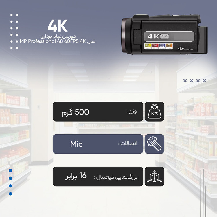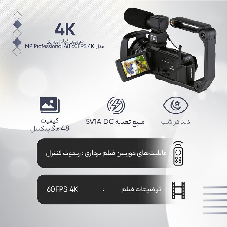 دوربین فیلم برداری مدل 4K 60FPS 48 MP Professional