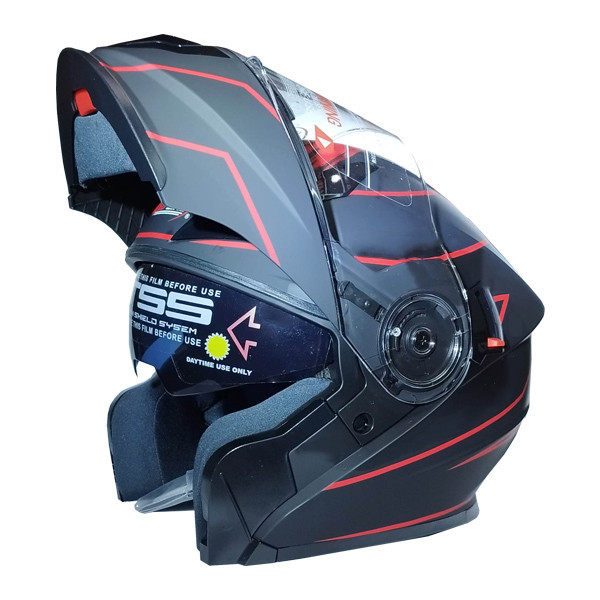 دارای پد گردن دارای پارچه های داخلی قابل شست وشو و تعویض دارای طلق شفاف پلی کربنات برای جلوگیری از کاهش دید راننده دارای عینکUV دودی با قابلیت جمع شدن دارای کاور پارچهای قابلیت نصب بلوتوث دارای استاندارد جهانی