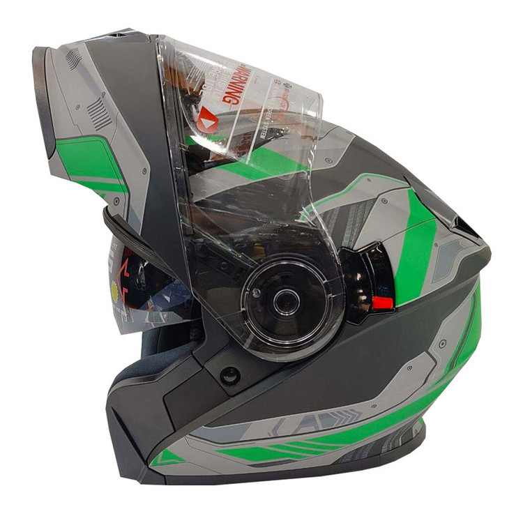 دارای پد گردن دارای پارچه های داخلی قابل شست وشو و تعویض داری طلق شفاف پلی کربنات برای جلوگیری از کاهش دید راننده دارای عینکUV دودی با قابلیت جمع شدن دارای کاور پارچهای قابلیت نصب بلوتوث
