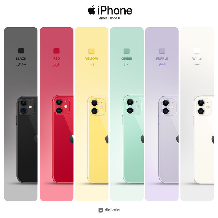 گوشی موبایل «iPhone 11» یکی از سه گوشی شرکت اپل است که در کنفرانس سال 2019 این شرکت معرفی شد. این گوشی نسبت به گوشیهای Pro و Pro Max قیمت پایینتری دارد اما طراحی مشابهی با این محصولات دارد. یکی از اصلیترین تفاوتهای این گوشی با دو گوشی دیگر، نمایشگر آیفون 11 است به فناوری Liquid Retina مجهز شده است تا قیمت تمام شده کمتری داشته باشد. البته این نمایشگر رزولوشن رضایتبخشی دارد؛ بهطوریکه در اندازهی 6.1 اینچیاش، حدود 326 پیکسل را در هر اینچ جا داده است که میزان مطلوبی به حساب میآید. قاب پشتی آیفون جدید هم از شیشه ساخته شده تا هم گوشی مشکل آنتندهی نداشته باشد و هم امکان شارژ بیسیم باتری در این گوشی وجود داشته باشد. البته قابی آلومینیومی این بدنه شیشهای را در خود جای داده است. این بدنهی زیبا در مقابل خطوخش مقاومت زیادی دارد؛ پس خیالتان از این بابت که آب و گردوغبار بهراحتی روی آیفون 11 تأثیر نمیگذارد، راحت باشد. علاوهبراین لکه و چربی هم روی این صفحهنمایش باکیفیت تأثیر چندانی ندارند اما این هم پایان کار نیست، آیفون جدید میتواند به مدت 30 دقیقه در عمق 2 متری آب دوام بیاورد. تشخیص چهره با استفاده از دوربین جلو دیگر ویژگی است که در آیفون جدید اپل به کار گرفته شده است. اما جالبترین و واضحترین تفاوت در این محصول جدید، دوربینهایی است که به شکل دوگانه در قاب پشتی جا خوش کردهاند. دو دوربین با سنسورهای 12مگاپیکسلی عکسهایی با کیفیتِ کاملاً رضایتبخش را به کاربر هدیه میدهد. دو دوربین که یکی از آنها SL سهبعدی است هم دیگر بهروزرسانی در آیفون 11 است. قابلیت اتصال به شبکههای 4G، بلوتوث نسخهی 5، نسخهی 13 از iOS دیگر ویژگیهای این گوشی هستند. ازنظر سختافزاری هم این گوشی از تراشهی جدید A13 بهره میبرد که تا بتواند علاوه بر کارهای معمول، از قابلیتهای جدید واقعیت مجازی که اپل این روزها روی آن تمرکز خاصی دارد، پشتیبانی کند. گوشی جدید اپل به باتری 3110 میلیآمپرساعتی، فناوری شارژ سریع PD2.0، فناوری شارژ بیسیم و استاندارد صوتی دالبی هم مجهز شده است. پارت نامبر این محصول ZAA است.