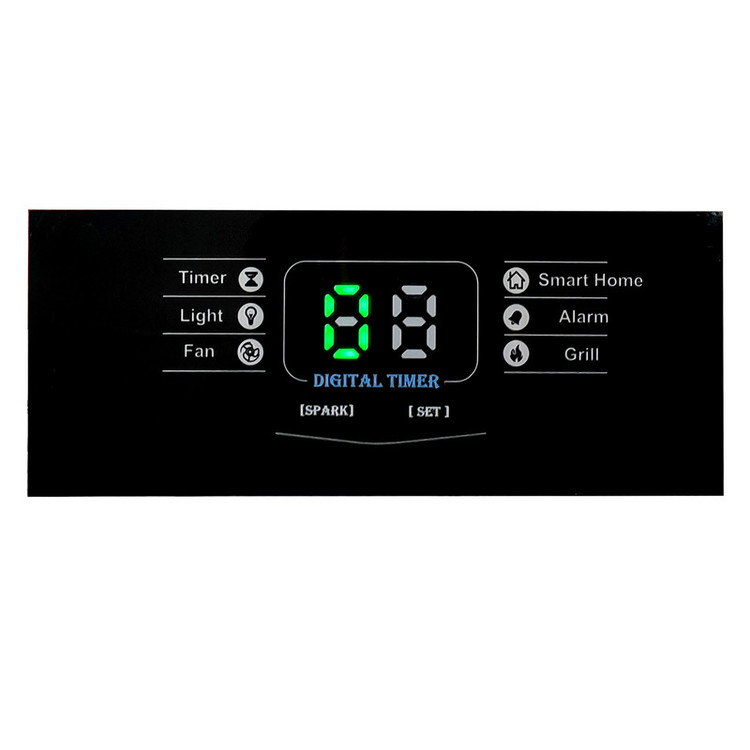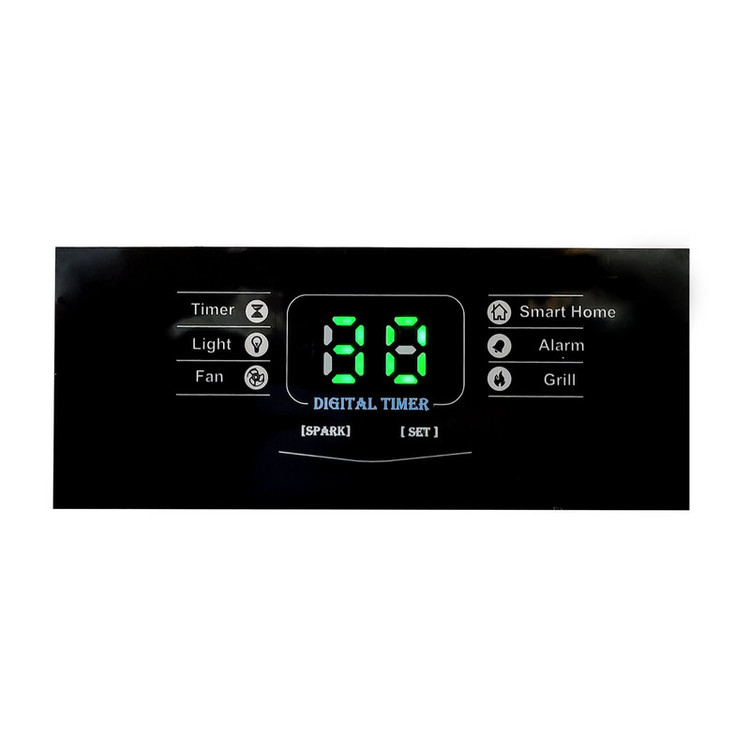 امکان تنظیم تایمر در زمانهای 5 تا 90 دقیقه ای با فواصل 5 دقیقه ای --- اعلام پایان زمان با پخش صدای بوق ---- قابلیت استفاده از یکی از دکمه ها روی تایمر بعنوان کلید شستی جرقه زن اجاق ----- کارکرد دستگاه با ولتاژ 220 ولت برق شهر
