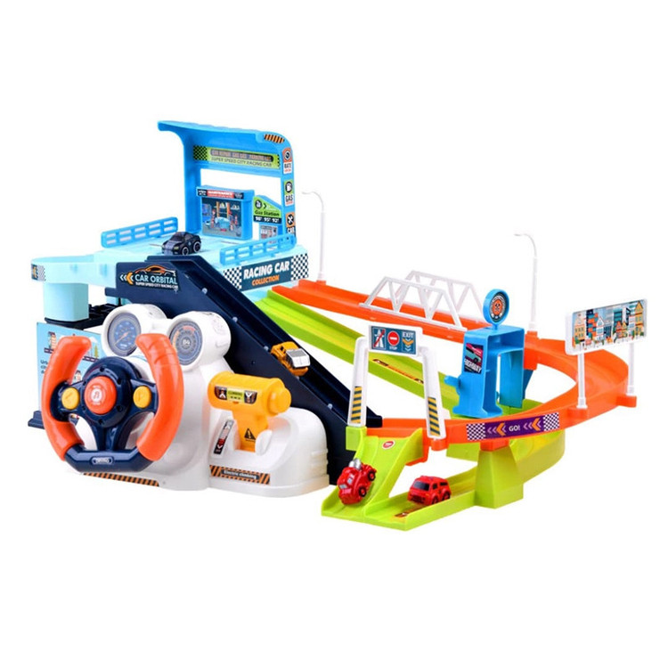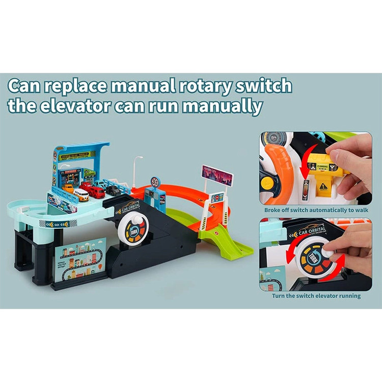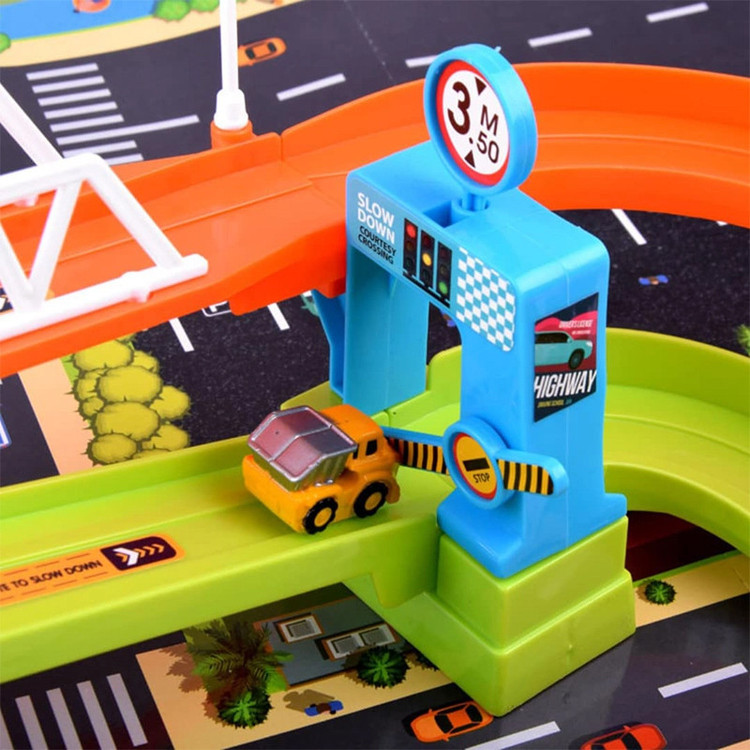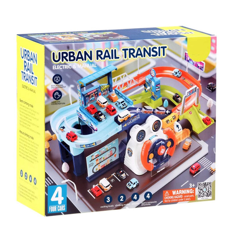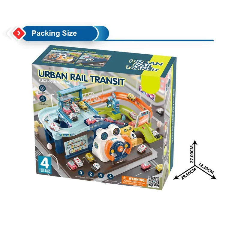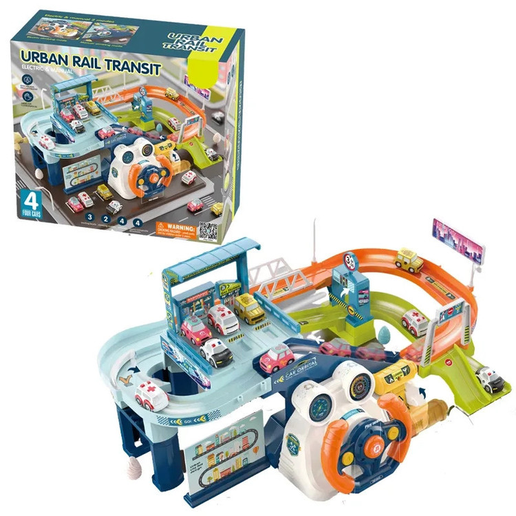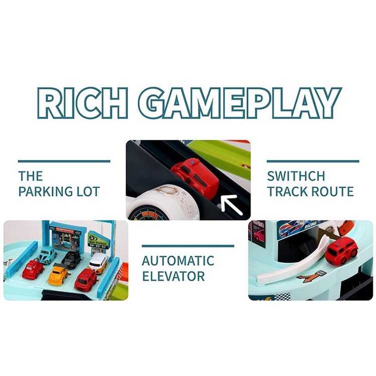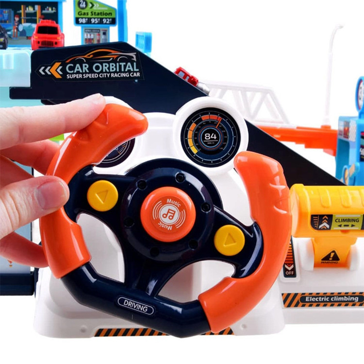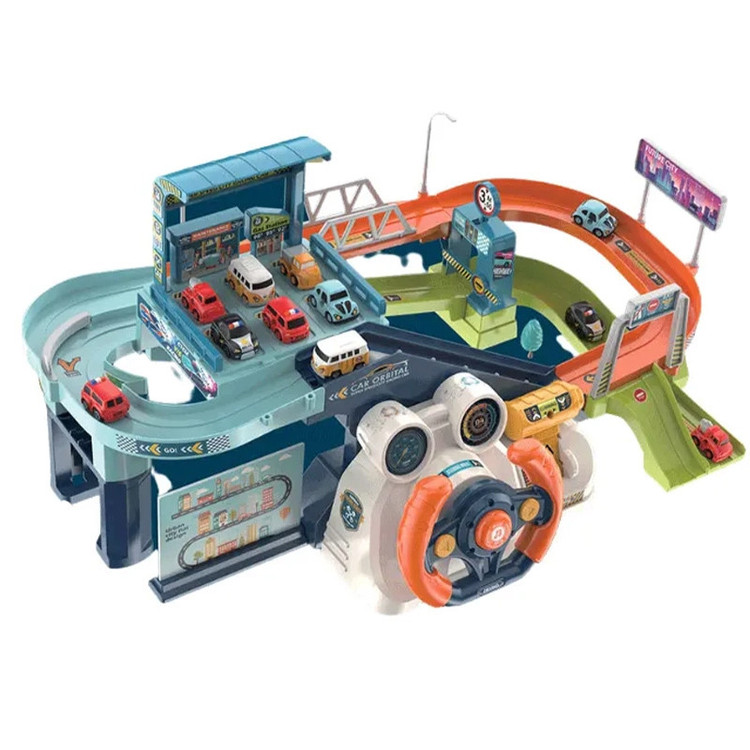 شامل: پارکینگ، 4 عدد ماشین کوچک، فرمان، مسیر اتصال، برچسب ها، مسیر U شکل، بیلبورد، علائم ترافیکی، رمپ، صفحه بازی و...