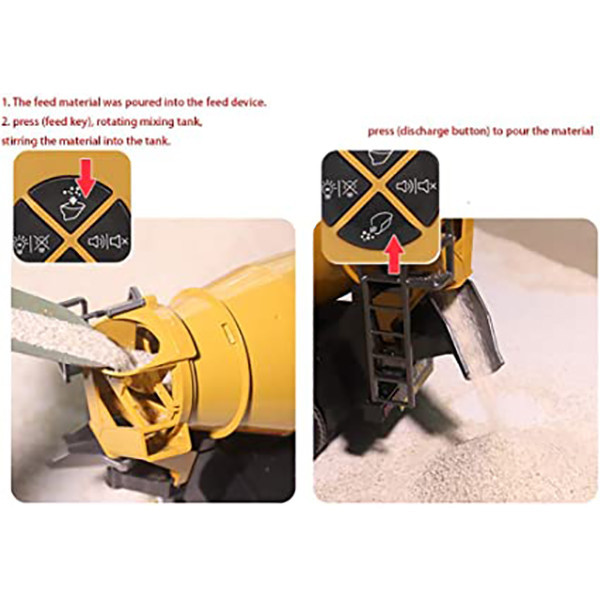 حرکت میکسر درجهت و خلاف جهت عقربه های ساعت, دارای 4 عدد کمک فنر فلزی, دارای چراغ های ال ای دی در جلو و عقب میکسر, قابلیت ریختن مواد در داخل میکسر