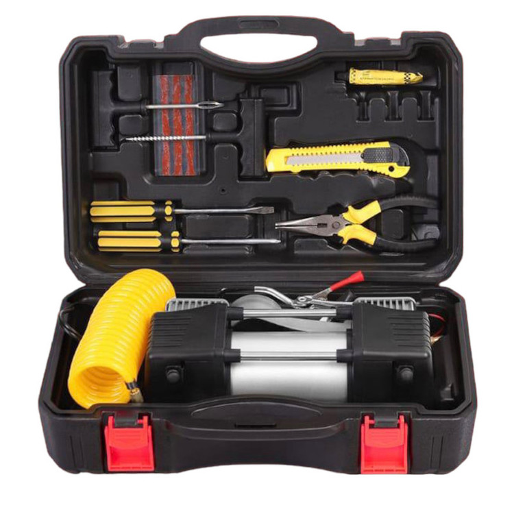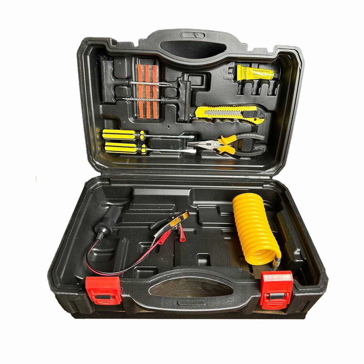انبردست - کاتر- پیچگوشتی - چهارسو - وسایل پنچرگیری - کابل اتصال به باطری - شلنگ فنری - سوزن باد - کیف قابل حمل BMC