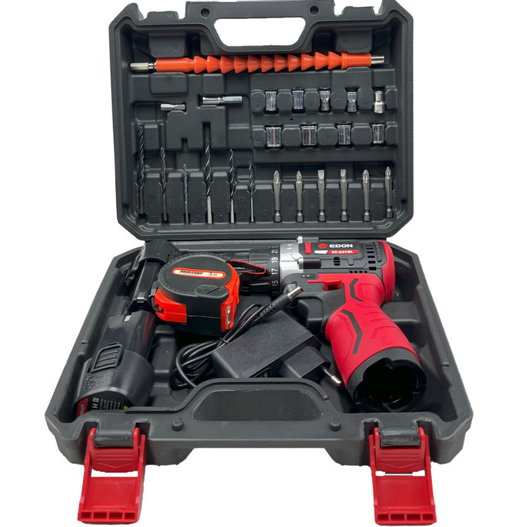 کیف , مته , آچار , سر پیچ گوشتی , شارژر , باتری اضافه , دفترچهی راهنما