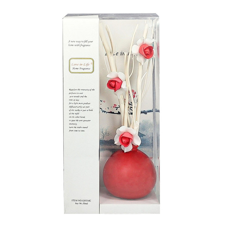 گلدان سرامیکی ---- گل مصنوعی ساخته شده از چوب و فوم---- یک مخزن مایع حاوی اسانس خوشبوکننده به حجم 30 میلی لیتر---- ابعاد : 6.4×6.4×21