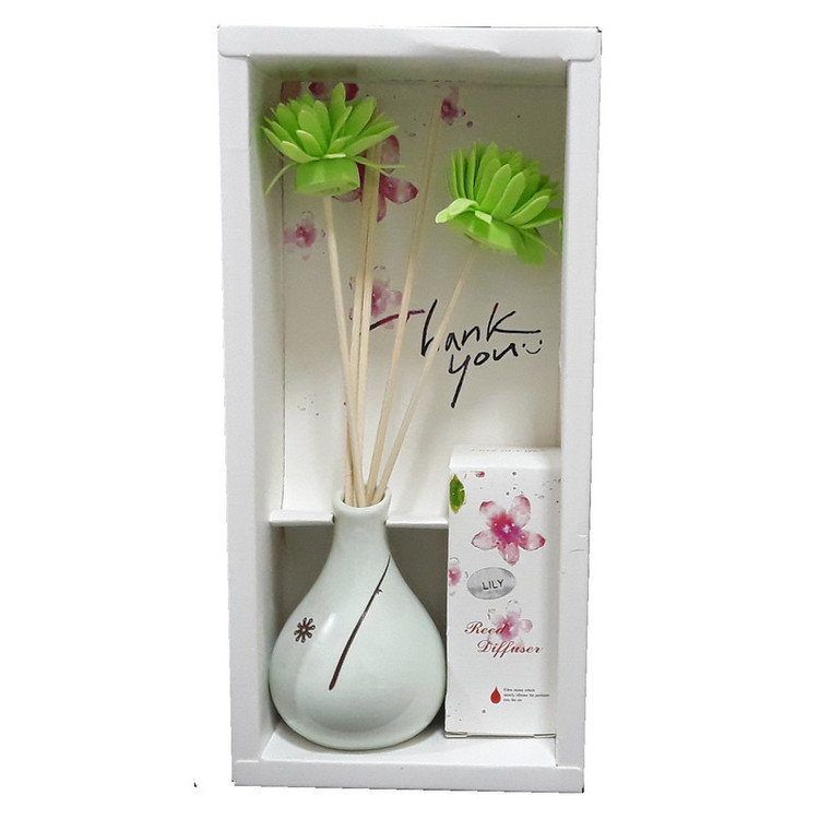گلدان سرامیکی گل مصنوعی ساخته شده از چوب و فوم یک مخزن مایع حاوی عطر گل زنبق (Lily )