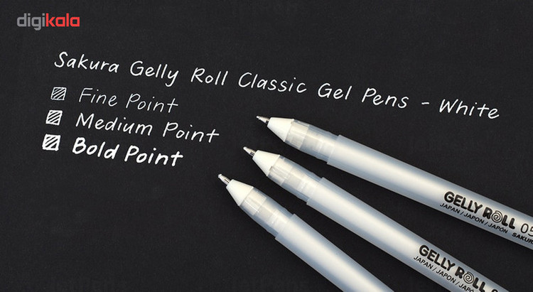 دارای جوهر ژله ای دارای نوک 0.8 میلیمتری مناسب طرای و نوشتن برروی کاغذ و یا مقوای مشکی ساخت ژاپن