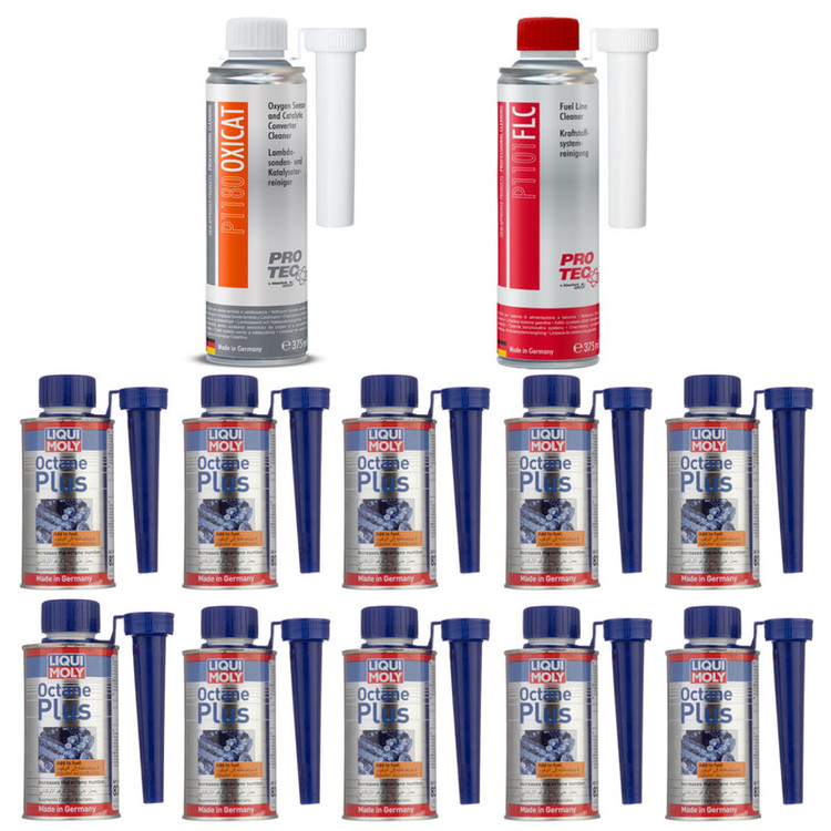 اکتان پلاس لیکومولی مدل Plus حجم 150 میلی لیتر به همراه کاتالیزورشوی و تمیزکننده سیستم سوخت رسانی پروتک بسته 12 عددی