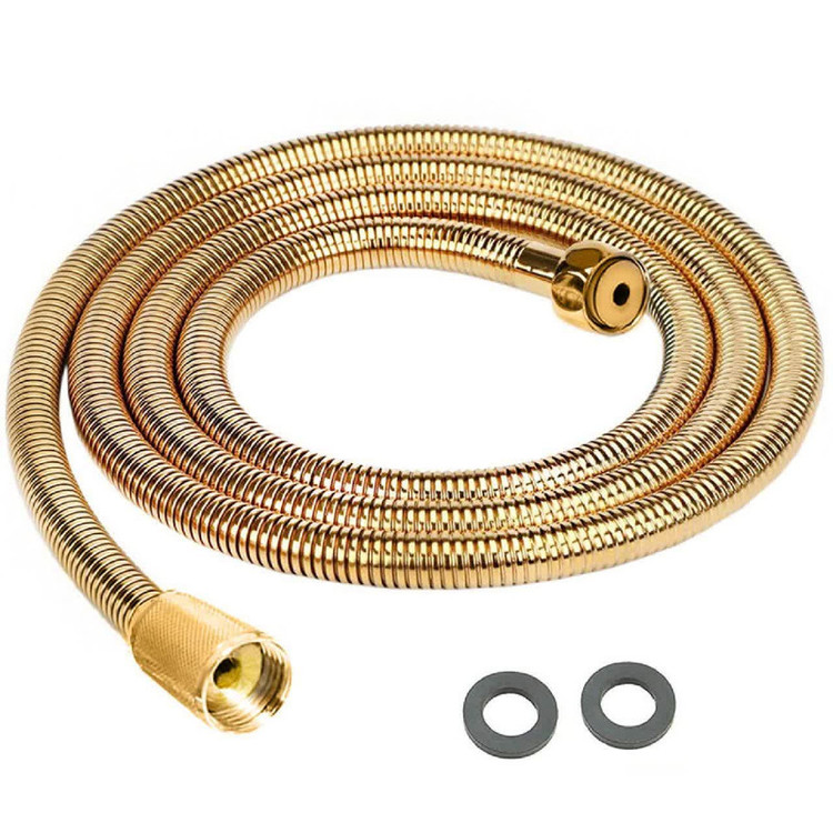 شلنگ دوش ریز بافت طلایی براق توسعه صنعت میراب مناسب انواع دوش و به هر سردوش با هر سایزی میخوره بهش طول شلنگ 1 متر و 50 سانت