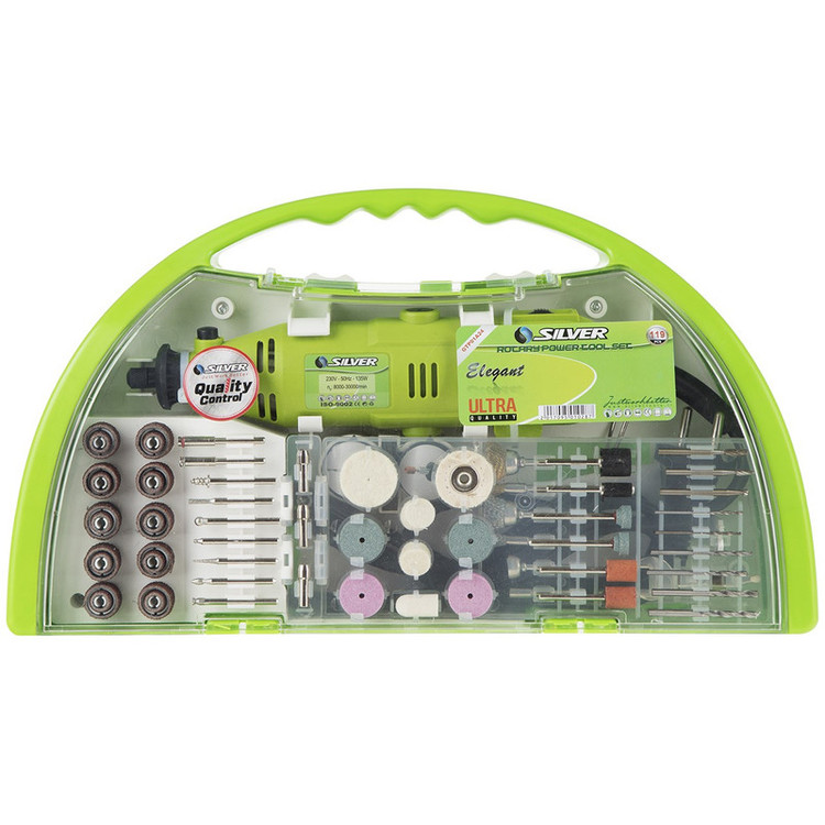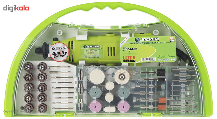- دارای 119 قلم ابزار مجزا جهت سوراخکاری، صیقل و ساب
