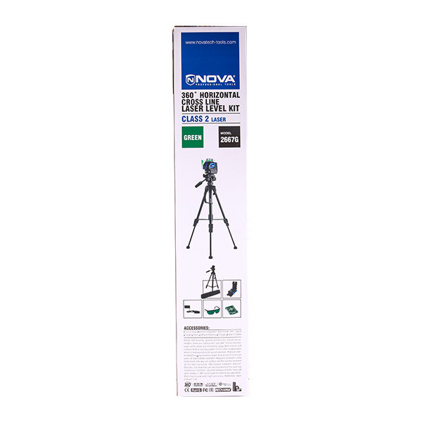 باتری , دارای سیستم تراز خودکار , قابلیت نصب روی پایه , نمایش خط لیزر افقی , نمایش خط لیزر عمودی