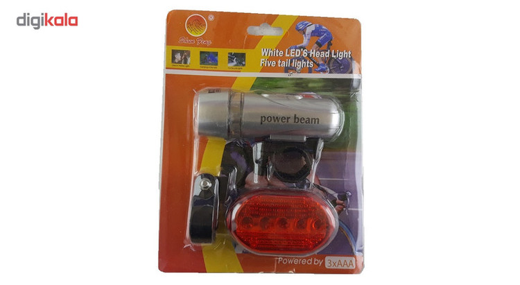 - چراغ جلو متشکل از 5 ال ای دی سوپر برایت ( فوق نورانی ) چراغ جلو با 4 باتری نیم قلمی AAA - چراغ خطر عقب با نور ثابت و 2 حالت چشمک زن که قابل انتخاب است تغذیه چراغ خطر عقب 2 عدد باتری نیم قلمی نور قرمز چراغ خطر قابل مشاهده تا 800 متری در تاریکی